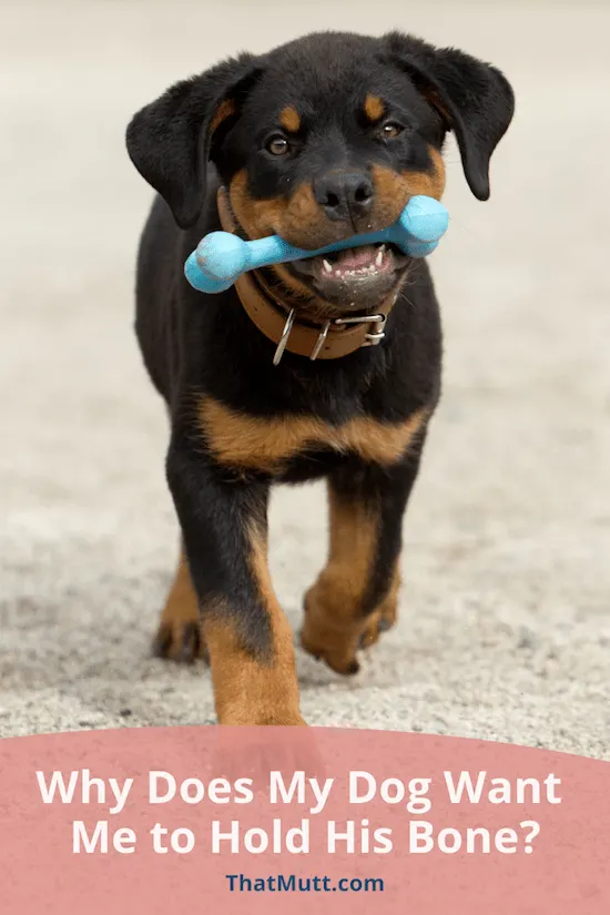 4. It can also be a way to show possessiveness over the bone by keeping it away from other dogs or by keeping YOU away from the other dogs.