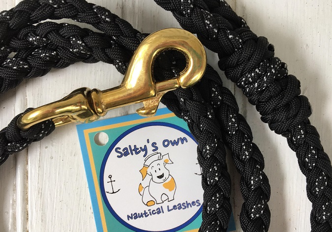 Salty’s Own Nautical Leashes is a company that makes beautiful hand-tied dog leashes and collars from USA-made paracord.