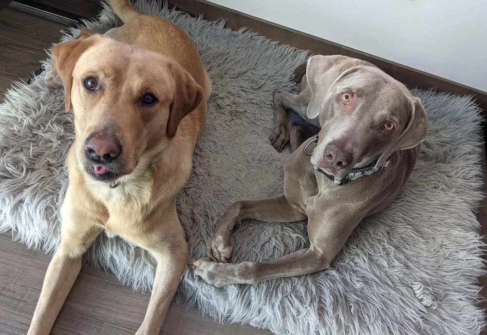 My two dogs get along great, and one funny thing they do while playing is my weimaraner will start to nibble my Labrador’s neck, ears, face or legs.